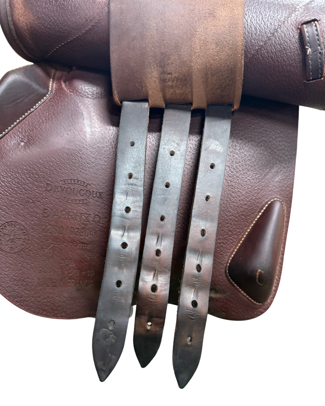 Devoucoux • Biarritz O • 17” • 2N • 3PB • D3D 4 +5 3 +10 (Panel modification tag attached) • 2022 • Arcade Normale • Brushed scapula for shoulder freedom • 3D image is available to compare with a 3D image of a horse’s back